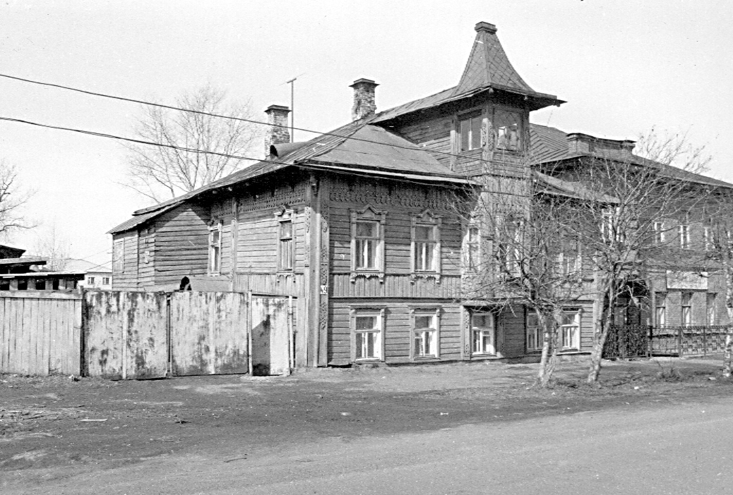 | | Дом жилой Богомолова,нач. XX в.Адрес Объем дома, в плане близкий квадрату, усложнен выступом лестничной клетки в дальней части бокового южного фасада. Оригинален облик небольшого мезонина, прорезающего вальмовую кровлю: он имеет вид башенки-фонарика, устроенной над эркером второго этажа и завершенной шатровой кровлей с вогнутыми гранями. Выпуски бревен на углах объема прикрыты досками, имитирующими лопатки, и украшены накладной резьбой. Под окнами второго этажа проходит широкий пояс из вертикально положенных досок обшивки. Из вертикального теса с узорными нижними концами сделан также фриз под широким карнизом, опирающимся на фигурные кронштейны. Окна первого этажа заключены в строгие наличники с профилированными сандриками. Наличники верхних окон более нарядны, с фигурными фартуками и щипцовыми подвышениями очелий (в 2000-х гг. отдельные проемы получили современные заполнения с расстекловкой, не соответствующей исторической). Главное окно башенки сохранило первоначальную раму с мелкой фигурной расстекловкой. Лит. и ист.: Памятники архитектуры Костромской области. Вып. 3. Кострома, 2001. С. 84. Персоны Богомолов Булатов А.М. Данные государственной охраны Категория охраны: объект, предлагаемый к включению в список выявленных объектов культурного наследия |