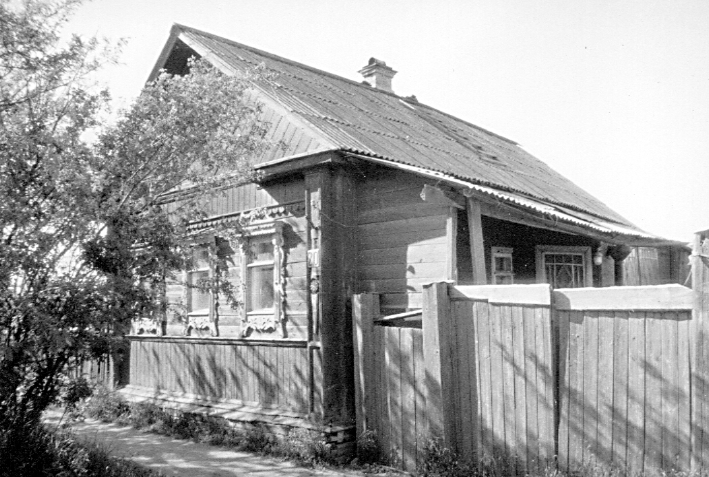 | | Дом жилой,нач. XX в.Адрес Трехоконный уличный фасад получил наиболее разработанное декоративное оформление, выполненное с использованием пропильной и объемной резьбы. Вертикальное членение фасада отмечено венчающим карнизом с гладкой выносной частью, тонким профилем, укрепленным под окнами, и небольшим выступом в нижней части стены. Вертикально уложенная под венчающим карнизом и под подоконниками окон вагонка является одним из декоративных приемов, широко распространенным в деревянной архитектуре рубежа 19-20 вв. Обшивка выступающих хвостов венцов сруба украшена гладкими «стрелками» и круглыми розетками, выполненными в технике трехгранно-выемчатой резьбы. Оконные наличники с полочками и фигурными навершиями имеют полотенца с интересной орнаментальной пропильной резьбой растительного характера. На боковых фасадах четырехстенка размещено по одному окну с наличниками более скромной формы. Лит. и ист.: Памятники архитектуры Костромской области. Вып. 3. Кострома, 2001. С. 183-184. Данные государственной охраны Категория охраны: объект, предлагаемый к включению в список выявленных объектов культурного наследия |