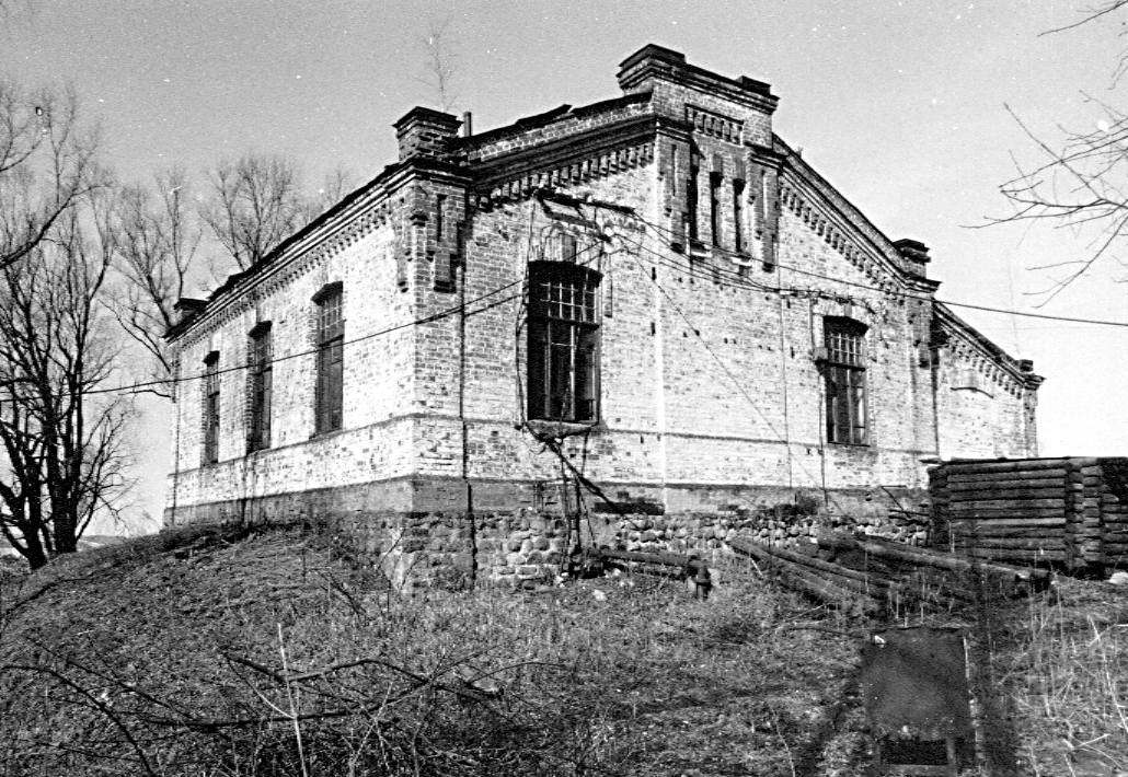 | | Станция насосная водозаборная,нач. XX в.Адрес Одноэтажное здание состоит из трех объемов, связанных между собой. Два из них — основной (помещение для насоса) и перпендикулярный его боковому фасаду склад (меньший по размеру) — кирпичные, с известковой обмазкой; третий — жилой, примыкающий к торцу насосной — деревянный, обшитый калеванным тесом. Все объемы подняты на валунном основании и крыты на два ската. Выразительность силуэту кирпичных частей здания придают небольшие горизонтальные аттики, подчеркивающие центры пологих щипцовых завершений торцовых фасадов, и отвечающие им тумбы на углах. Декор этих объемов типичен для кирпичного стиля: высокий гладкий цоколь и огибающие угловые лопатки со ступенчатыми языками, спускающимися от профилированного карниза, дополненного длинными консольками; аналогичные языки служат украшением легких раскреповок в средней части торцовых фасадов, под аттиками. Довольно крупные окна с лучковыми перемычками отмечены полуналичниками с замками. В деревянной части горизонтали высокого оштукатуренного цоколя вторят подоконный пояс и фриз под свесом кровли, образованные вертикально положенным тесом. Простые рамочные наличники окон завершаются полочками на маленьких кронштейнах. В 2000-х гг. отдельные окна в деревянной части получили современные заполнения, а перед входом была выстроена тесовая пристройка. Внутри в каждом из объемов находится по одному помещению с изолированными входами. Лит. и ист.: Памятники архитектуры Костромской области. Вып. 3. Кострома, 2001. С. 111-112; ГАКО. Ф. 1098. Оп. 1. Ед. хр. 337. Л. 5-10. Данные государственной охраны Категория охраны: объект, предлагаемый к включению в список выявленных объектов культурного наследия |