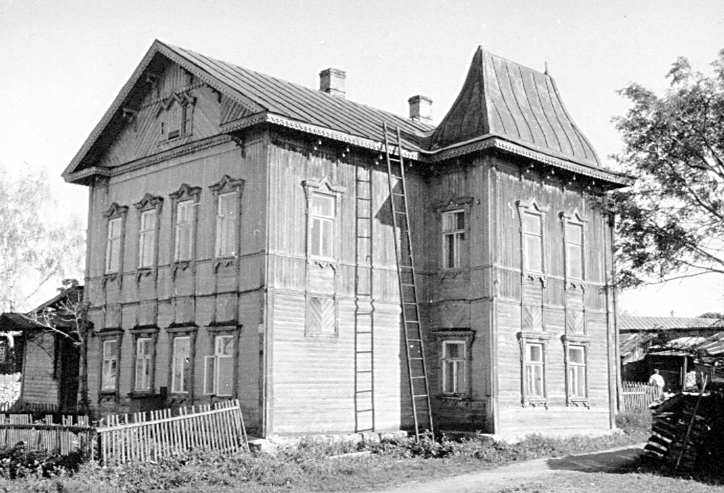 | | Дом жилой Бубиных,нач. XX в.Адрес В оформлении фасадов использованы широко распространенные в провинции в нач. XX в. упрощенные по характеру рисунка детали эклектичного декора. Стены по периметру объема завершены карнизом большого выноса, усложненным поясом городков и опирающимся на фигурные кронштейны; в уровнях междуэтажного членения и подоконников окон второго этажа укреплены скромные накладные профили, а тонкие угловые пилястры почти сливаются с вертикально укрепленной на втором этаже наружной тесовой обшивкой. Рамочные наличники на прямоугольных окнах, в первом этаже завершены прямыми полочками, на втором — щипцовыми навершиями. Между собой они объединены накладными рейками, образующими на фасадах подобие вертикальных ниш, в которых над окнами нижнего этажа обшивка уложена в «елку», а под подоконниками верхнего — горизонтально. В тимпане полуфронтона на переднем фасаде помещено тройное чердачное окно со щипцовыми навершиями. Над входом в здание сохранился старый металлический зонт на ажурных кронштейнах. Одинаковая на обоих этажах планировка состоит из нескольких несимметрично расположенных комнат. На второй этаж ведет маршевая лестница с точеными балясинами. Лит. и ист.: Памятники архитектуры Костромской области. Вып. 3. Кострома, 2001. С. 241. Персоны Бубины Данные государственной охраны Категория охраны: объект, предлагаемый к включению в список выявленных объектов культурного наследия |