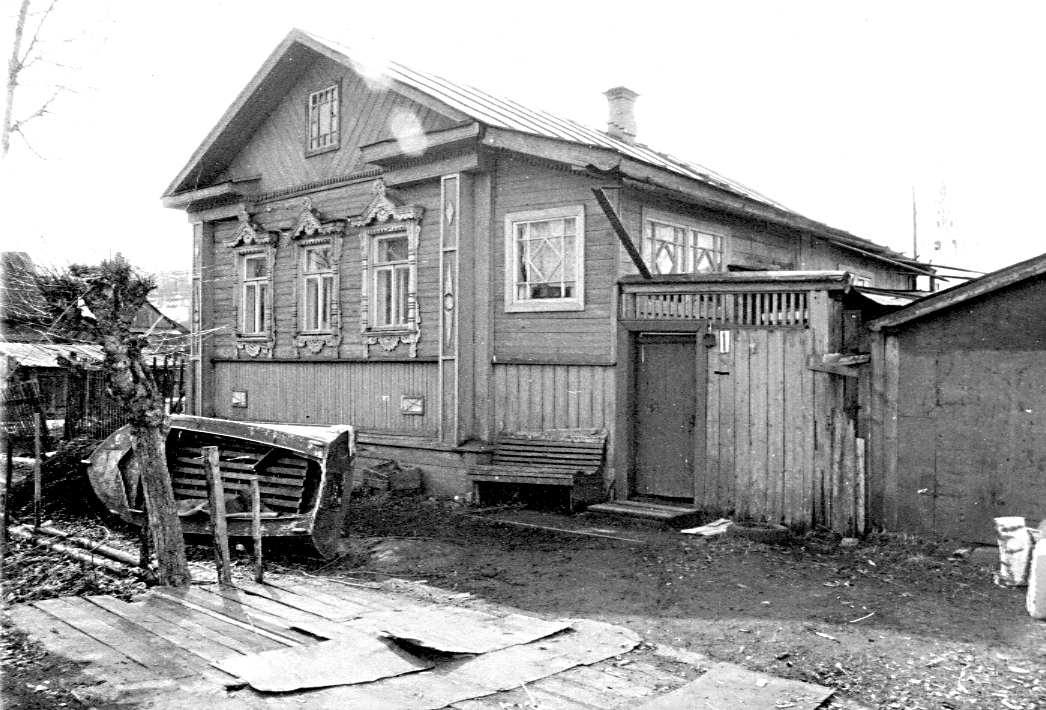 | | Дом жилой,кон. XIX в.Адрес В оформлении здания использован традиционный для своего времени набор декоративных приемов и форм, придающих его фасадам измельченный дробный облик. На уличном фасаде обшивка тимпана фронтона уложена в «елку». Стены по периметру завершены гладким карнизом с нешироком фризом, украшенным поясом мелких зубчиков. Под подоконниками окон укреплен тонкий профиль, под которым вертикально уложенная вагонка образует широкий пояс. Цокольная часть отмечена выступом стены. Обшивка выступающих хвостов венцов сруба декорирована фигурными «стрелками» и ромбами. Прямоугольные окна на уличном фасаде обрамлены наличниками с щипцовыми навершиями, украшенными ажурной пропильной резьбой, и объемными полуколонками на вертикальных стойках. На боковом фасаде окна имеют рамочные обрамления простейшей формы. В сенях, примыкающих к дому, в советское время были прорублены широкие оконные проемы. Планировка дома состоит из одной жилой комнаты и узкой прихожей. Лит. и ист.: Памятники архитектуры Костромской области. Вып. 3. Кострома, 2001. С. 208-209. Данные государственной охраны Категория охраны: объект, предлагаемый к включению в список выявленных объектов культурного наследия |