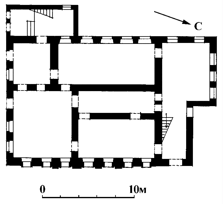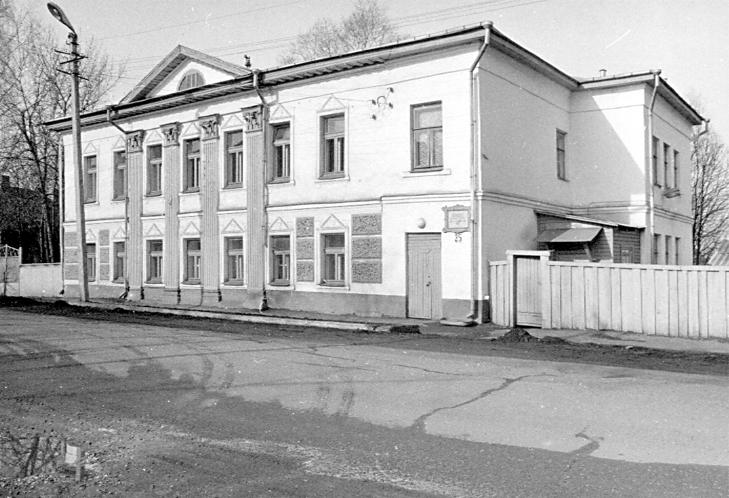 | | Дом жилой П.П. Свиньина,нач. XIX в.Адрес Первоначальный объем здания имеет прямоугольную в плане форму и обращен к улице восточным фасадом в семь оконных осей. Впоследствии к дому пристроили две лестничных клетки — одна, подведенная под вальмовую кровлю основного объема, полностью скрыла торцовый северный фасад, вторая, небольшая, образовала ризалит на правом фланге западного дворового фасада. Главный фасад первоначальной части дома имеет симметричную композицию. Каждый из этажей завершен узким профилированным карнизом; венчающий карниз дополнен широким гладким фризом и широкой деревянной выносной плитой с мутулами. Середина фасада подчеркнута портиком из четырех каннелированных пилястр большого ордера с сочно вылепленными коринфскими капителями и треугольным фронтоном с полуциркульным окном в тимпане. В противоположность капителям профилированные рамочные наличники с треугольными фронтончиками отличаются сухостью и некоторой наивностью (например, изображение замков в виде клиновидных выступов в тимпане фронтонов). Возможно, наличники, как и крупный руст «под шубу» на флангах нижнего этажа, — результат переделок здания во 2-й пол. 19 в. Внутри здания за двумя крупными комнатами, обращенными окнами на улицу, находится короткий продольный коридор, отделяющий два помещения в дворовой части. Во втором этаже две комнаты в южной части дома связаны широкой аркой. Лит. и ист.: Русский биобиблиографический словарь. СПб, 1904. С. 218-221; Данилов В. Дедушка русских исторических журналов // Исторический вестник. 1915. № 7. С. 15; Касторский В. Писатели-костромичи. Кострома, 1958; Тиц А.А. На земле древнего Галича. М., 1971. С. 47; Бочков В. Прообраз Хлестакова // Северная правда. Кострома, 1978. 26 сентября; Белов Л. Улица Свободы // Ленинский путь. Галич, 1979. 15 мая; Смирнов Ю, Крылова М. Галичский род Свиньиных // Губернский дом. Кострома, 2000. № 2. С. 6; Памятники архитектуры Костромской области. Вып. 3. Кострома, 2001. С. 157-158; Балакин Ю. Улица Свободы // Галичские известия. Галич, 2001. 23 августа. Персоны Жадовские Свиньин Б.Н. Свиньин Павел Петрович Свиньины Сотников Н.Ф. Данные государственной охраны Категория охраны: объект культурного наследия федерального значения Название по постановлению: Дом Свиньина Датировка по постановлению: нач. XIXв. Постановление: Указ Президента РФ от 20.02.1995 г. № 176 «Об утверждении Перечня объектов исторического и культурного наследия федерального (общероссийского) значения» |
