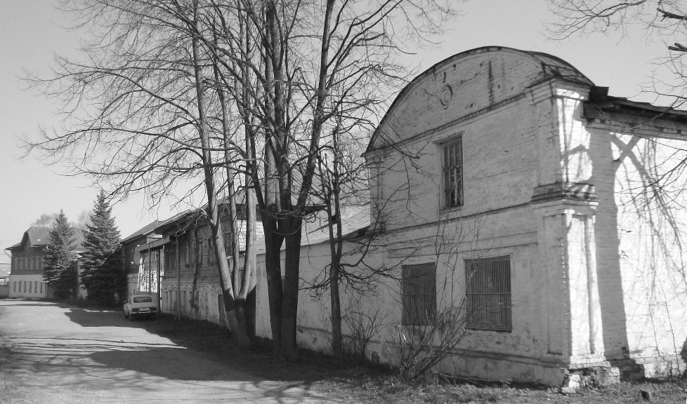 | | Кожевенный завод Каликиных,2-я пол. XIX - нач. XX в., 1-я пол. XX в.Адрес Комплекс расположен в северо-восточной части Шокши на берегу реки и занимает значительный по площади участок неправильной в плане конфигурации. Сооружения комплекса неоднократно перестраивались, дополнялись новыми помещениями и пристройками. В настоящее время относительно хорошо сохранились здания, вытянутые в ряд вдоль берега реки. С северной стороны ряд заводских построек замыкает административный корпус — двухэтажное с кирпичным оштукатуренным первым и деревянным обшитым тесом вторым этажами здание, обращенное к набережной продольным фасадом в шесть равномерно расставленных оконных осей. Его первый этаж, сохранивший на переднем фасаде остатки ленточной рустовки, был сооружен, очевидно, во 2-й пол. XIX в.; второй этаж, акцентированный в центре высоким щипцом, надстроен в нач. XX в. Далее на юг выделяется большой также двухэтажный с кирпичным первым и деревянным вторым этажами производственный корпус 2-й пол. XIX в., являющийся, очевидно, самой ранней из сохранившихся построек комплекса. Его оштукатуренный и побеленный первый этаж сохранил на переднем фасаде интересную декоративную обработку, выполненную в своеобразных эклектичных формах. В соответствии с внутренней трехчастной планировочной структурой, фасад решен в девять оконных осей, сгруппированных по три. На первом этаже внутренним капитальным стенам соответствуют широкие филенчатые пилястры; окна с лучковыми перемычками обрамлены наличниками в виде кирпичных валиков; по верху кирпичной кладки проходит карниз с поясом сухариков. Обшитый тесом второй этаж завершен слабо профилированным карнизом. С южной стороны ряд построек замыкает кирпичный, оштукатуренный склад готовой продукции кон. XIX в. — двухэтажная постройка с филенчатыми пилястрами на углах, завершенная на переднем и заднем фасадах необычными лучковыми фронтонами. В глубине территории, в ее восточной части, выделяется два больших, поставленных вплотную друг к другу кирпичных производственных корпуса 1930 г., сохраняющих в своей архитектуре черты поздней эклектики. Прямоугольные в плане здания, покрытые двускатными с треугольными кирпичными фронтонами на торцах крышами, освещается чрезвычайно высокими, равномерно расставленными арочными окнами с замками в перемычках. Обработанные пилястрами фасады завершены широкими карнизами упрошенного рисунка. Над углами одного из корпусов сохранились аттиковые тумбы. В северной части территории завода расположен еще один сильно перестроенный в советское время двухэтажный кирпичный производственный корпус, в основе которого, сохранились части стен более раннего здания XIX в.; рядом с ним — одноэтажная кирпичная хозяйственная постройка кон. XIX в. Лит. и ист.: Костромские губернские ведомости. Часть неофициальная. Кострома, 1863. № 30; Зайцев М. Познай свои корни: Очерки по истории Шокши и кожзавода «Революция». Галич, 1993. С. 15-18; Памятники архитектуры Костромской области. Вып. 3. Кострома, 2001. С. 225-227. Персоны Каликин Александр Алексеевич Каликин Алексей Алексеевич Каликин Николай Алексеевич Каликины Данные государственной охраны Категория охраны: объект, предлагаемый к включению в список выявленных объектов культурного наследия |