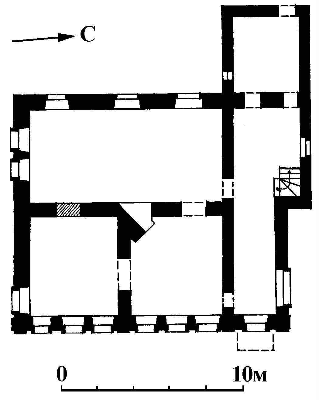| | Дом жилой Дубовых,2-я пол. XIX в.Адрес Основной декор сосредоточен на главном фасаде, тем не менее по всем фасадам, кроме дворового, проходит довольно высокий чуть выступающий цоколь, прорезанный полуподвальными окнами с лучковыми перемычками (в 2000-х гг. они были заложены), и профилированный венчающий карниз, деревянная выносная плита которого украшена мутулами и розетками на углах. Филенчатые пилястры фиксируют углы главного фасада и делят его на три части: в двух из них расположено по три окна, а в одной — на правом фланге — одно (поначалу здесь располагался парадный вход под металлическим зонтом на ажурных кронштейнах). Однако при подобной асимметрии членений середина фасада подчеркнута низким аттиком, изгибающимся над круглым чердачным окошком, акцентирующим центральную ось здания. Окна основного этажа, имеющие лучковые перемычки, обрамлены тянутыми наличниками с ушами, под проемами помещены профилированные лежачие филенки, над — треугольные сандрики на маленьких кронштейнах. Лит. и ист.: Костромской край в докладах 1-й Костромской губернской конференции. Кострома, 1924. С. 166; Ракобольский В. В авангарде борьбы за новую жизнь // Ленинский путь. Галич, 1978. 10 ноября; Ракобольский В. Первая партийная ячейка // Ленинский путь. Галич, 1978. 21 октября; Белов Л. Улица Семашко // Ленинский путь. Галич, 1981. 12 марта; Памятники архитектуры Костромской области. Вып. 3. Кострома, 2001. С. 168-169. Персоны Дубовы Петров И.И. Рубова А.А. Данные государственной охраны Категория охраны: объект культурного наследия регионального значения Название по постановлению: Дом жилой Рубовой. Здесь размещался уездный комитет РКП(б) Датировка по постановлению: 2-я пол.XIXв.;9 ноября 1918-весна 1919гг. Постановление: Постановление главы администрации Костромской области от 30.12. 1993 г. № 598 «Об объявлении находящихся на территории Костромской области объектов, имеющих историческую, культурную и научную ценность, памятниками истории и культуры», приложение 1 |