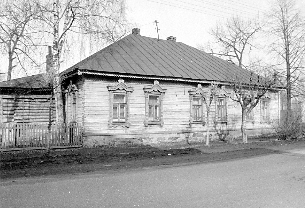 | | Дом жилой Дубовых,посл. четв. XIX в. Адрес Свободы, ул, д. 33 Одноэтажный жилой дом на углу ул. Свободы с ул. К. Цеткин выделяется в уличной застройке профессиональным резным декором в русском стиле. Прямоугольный в плане объем, вытянутый вдоль улицы и завершенный высокой вальмовой кровлей, усложнен крупной пристройкой пониженных сеней, одновременных зданию и примыкающих к его северному торцу. В 2000-х гг. к уличному фасаду сеней примкнула тесовая пристройка для входа. В отличие от сеней стены основного объема обшиты тесом. Здание поднято на кирпичном оштукатуренном цоколе, завершенном полувалом. Венчающий карниз дополнен широким гладким фризом и изящным подзором по краю кровли. Прямоугольные окна заключены в наличники, боковины которых украшены объемной, а завершения с щипцовыми фронтонами и полусолнышками в них — пропильной резьбой. В ее мотивах угадывается прототип — рисунки В. Гартмана для альбома деталей к фасадам дач, изданного им в 1870-е гг. Несколько окон в 2000-х гг. получили современные заполнения с расстекловкой, не соответствующей исторической. Лит. и ист.: Памятники архитектуры Костромской области. Вып. 3. Кострома, 2001. С. 160. Персоны Гартман Виктор Александрович Дубовы Данные государственной охраны Категория охраны: объект, предлагаемый к включению в список выявленных объектов культурного наследия