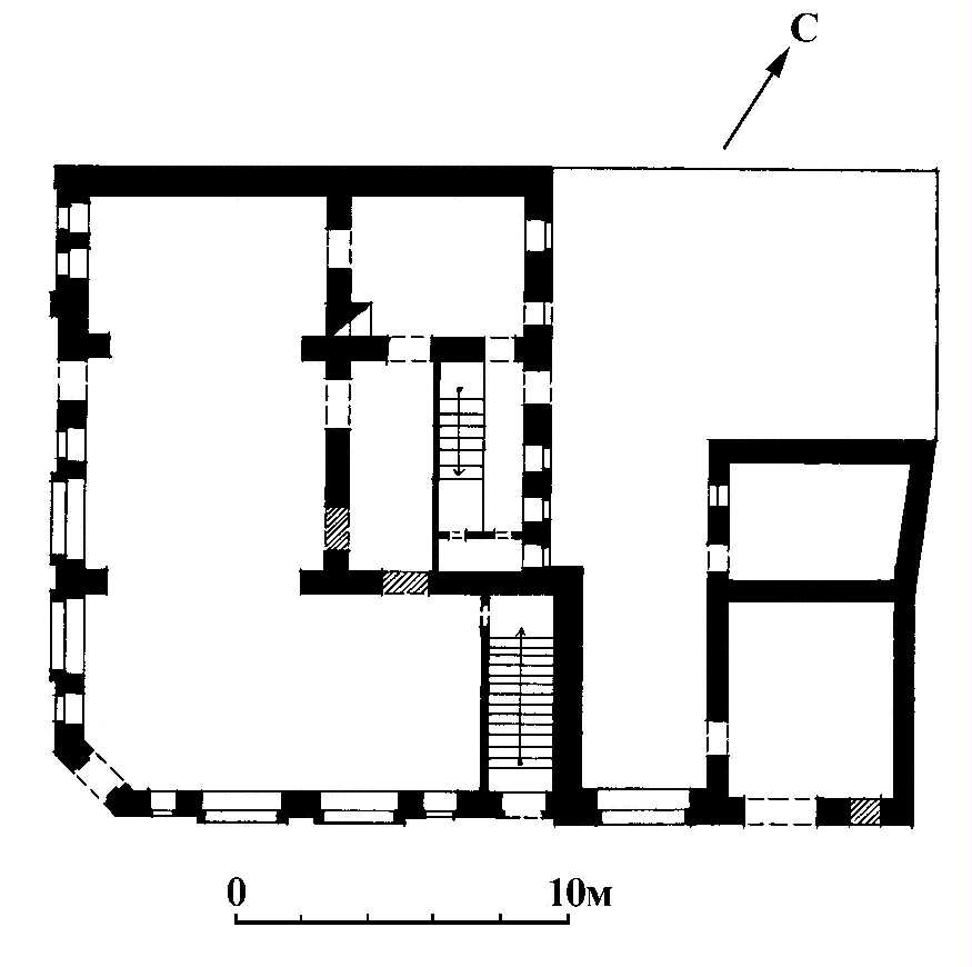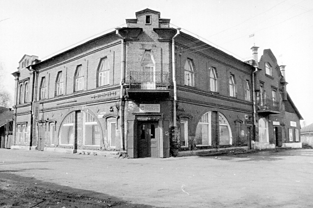 | | Дом жилой А.М. Жилиной,нач. ХХ в.Адрес К одному из боковых фасадов дома примыкает крупная пристройка 2-й пол. ХХ в. Г-образный план здания имеет срезанный внешний угол, фиксирующий среднюю ось композиции, которая развернута вдоль улицы и переулка. На срезанном углу расположен центральный вход в магазин и балкон с ажурной металлической решеткой, а плоскость стены завершается ступенчатым аттиком со щипцом. Уличные фасады в своей основной части идентичны, а их фланги решены по-разному. Своей оригинальной формой выделяются окна. На первом этаже крупные витрины представляют собой трехчастные полукруглые проемы с узким и глухим средником. Окна второго этажа имеют высокие трехгранные перемычки и обрамлены широкими плоскими наличниками. Этажи разделены двумя полочками. Фланги фасадов в две оси проемов завершены аттиками — небольшим щипцовым со стороны переулка и более крупным фигурным со стороны улицы, где также устроен балкон с металлической решеткой. Три различных по форме аттика (над срезанным углом и на флангах) объединены парапетным металлическим ограждением простого рисунка в виде косой сетки. Нижний этаж занимают крупные торговые залы вдоль уличных фасадов и складские помещения позади них. Планировка второго этажа переделана. Снизу ведет новая лестница, но расположена она на старом месте, а на верхней площадке сохранились точеные балясины (так же как у лестницы, поднимающейся в мансарду). В интерьере второго этажа уцелели филенчатые двери. Лит. и ист.: Белов Л. Кооперативная улица // Ленинский путь. Галич, 1983. 28 июля; Памятники архитектуры Костромской области. Вып. 3. Кострома, 2001. С. 62-63. Персоны Жилина А.М. Данные государственной охраны Категория охраны: объект культурного наследия регионального значения Название по постановлению: Дом жилой Жилина Датировка по постановлению: 1915 г. Постановление: Постановление главы администрации Костромской области от 30.12. 1993 г. № 598 «Об объявлении находящихся на территории Костромской области объектов, имеющих историческую, культурную и научную ценность, памятниками истории и культуры», приложение 1 |