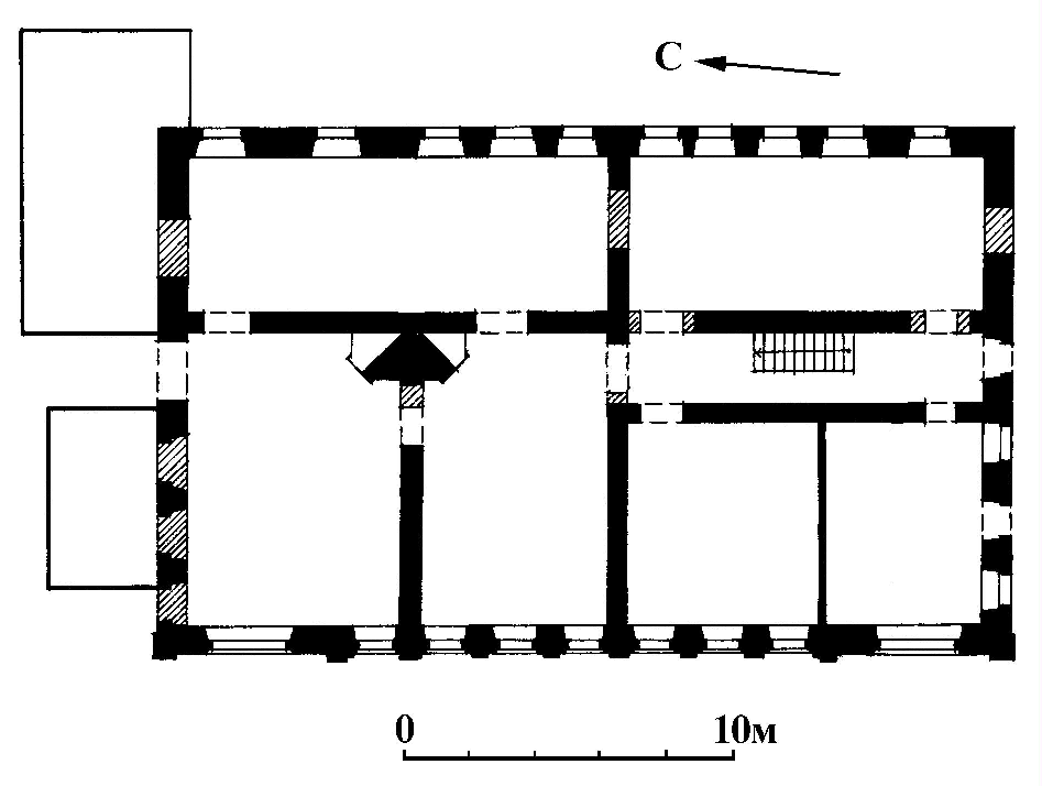 | | Училище духовное,1-я четв. XIX в.Адрес Вытянутый вдоль улицы прямоугольный в плане объем, завершенный вальмовой кровлей, усложнен выступами лестничных клеток на торцовых фасадах и по центру дворового. Здание имеет невысокий гладко оштукатуренный цоколь. Первый этаж, трактованный как цокольный, обработан широким дощатым рустом и отделен от парадного второго, с более высокими проемами, профилированной тягой. Средняя часть фасада, фланкированная легкими ризалитами с треугольными фронтонами и рустованными в нижней части углами, украшена шестью коринфскими пилястрами, объединяющими оба этажа и зрительно поддерживающими неполный антаблемент с профилированным карнизом и широким гладким фризом. В первом этаже каждого из ризалитов помещено по широкому полуциркульному окну с подоконной лежачей нишкой и крупным замком, над ним — трехчастное прямоугольное окно с более узкими боковыми проемами, отделенными от центрального коринфскими пилястрами. Прямоугольные окна в остальных частях здания наличников не имеют, однако в первом этаже они дополнены плоскими лежачими подоконными нишками и отмечены крупными замковыми камнями. Основу планировки каждого из этажей составляют две капитальные стены — поперечная, членящая дом на две половины, и продольная, разделяющая две группы помещений. Наиболее крупные, парадные помещения обращены окнами на улицу, меньшие по размерам сосредоточены в дворовой части. В правой части здания вдоль продольной стены выделен небольшой коридор. В настоящее время первоначальная планировка нарушена новыми перегородками. Лит. и ист.: Костромские епархиальные ведомости. Кострома, 1891. Вып. 2. С. 241-243; Византийский временник. М., 1947. Т. 1; Удальцова З. К вопросу об оценке трудов академика Ф.И. Успенского // Вопросы истории. М., 1949. № 6; Сытина Т.М. Гражданская архитектура Верхнего Поволжья второй половины XVIII — первой трети XIX века: Диссертация на соискание ученой степени кандидата архититектуры. М., 1952. С. 121-123; Белов Л. и др. Галич. Кострома, 1959. С. 123; Тиц А.А. На земле древнего Галича. М., 1971. С. 47; Материалы Свода памятников истории и культуры РСФСР. Костромская область. М., 1976. С. 105-106; Белов Л., Зубова В., Касторский В., Соколов Н., Щеголев Н. Галич. Ярославль, 1983. С. 72; Белов Л. Улица Свободы // Ленинский путь. Галич, 1979. 15 мая; Памятники архитектуры Костромской области. Вып. 3. Кострома, 2001. С. 145-146; ГАКО. Ф. 130. Оп. 7. Ед. Хр. 341. Л. 20-2; РГИА. Ф. 835. Оп. 1. Ед. Хр. 268. Л. 1. Персоны Успенский Федор Иванович Данные государственной охраны Категория охраны: объект культурного наследия регионального значения Название по постановлению: Здание, в котором в 1854-1860 г. учился Успенский Ф.Н. Постановление: Решение исполнительного комитета Костромского областного Совета депутатов трудящихся от 18.01. 1968 г. № 11 «О взятии под местную охрану памятников истории и культуры, находящихся на территории Костромской области» |