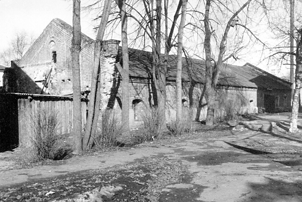 | | Хозяйственная постройка,посл. четв. XIX в. Адрес Свободы, ул, между д. 8 и д. 10 Одноэтажный кирпичный корпус, поставленный в глубине участка по границе двух владений, — единственный сохранившийся элемент городской усадьбы периода эклектики. Прямоугольный в плане, сильно вытянутый объем завершен двускатной кровлей, образующей на торцах высокие щипцы с арочным окошком в центре и тумбами по бокам. В 2000-х гг. при строительстве нового здания в непосредственной близости от торца корпуса, обращенного к улице, у ближайшего щипца была понижена фасадная стена. Продольные фасады прорезаны редко и нерегулярно расставленными окнами с лучковыми перемычками. Узкий венчающий карниз образован тремя нависающими рядами кирпичной кладки. Лит. и ист.: Памятники архитектуры Костромской области. Вып. 3. Кострома, 2001. С. 147. Данные государственной охраны Категория охраны: объект, предлагаемый к включению в список выявленных объектов культурного наследия