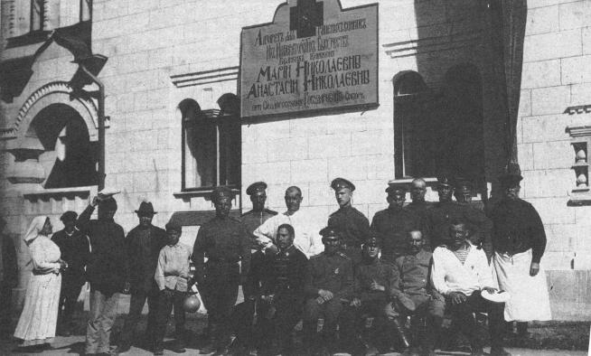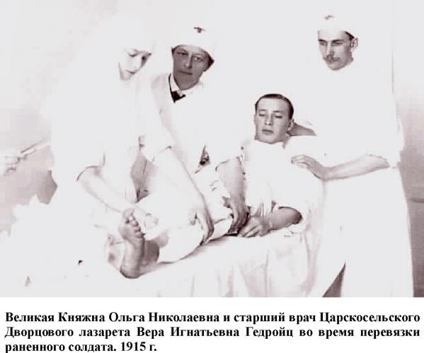 | | | | hidden | | | 17 января. В Александровском дворце принят наследный сербский принц Александр.3 февраля. В Александровском дворце Николай II принимает нового французского посла М.Палеолога с полным составом посольства.24 июня ... | | 17 января. В Александровском дворце принят наследный сербский принц Александр. 3 февраля. В Александровском дворце Николай II принимает нового французского посла М.Палеолога с полным составом посольства. 24 июня. Произошла закладка новых зданий казарм 2-го стрелкового, 3-го стрелкового полков и Конвоя в присутствии Николая II. 20 июля. Подписан манифест об объявлении войны Германии. Август. Княжна В.И.Гедройц работает над переоборудованием Царскосельского дворцового госпиталя, подготавливая его к приему раненых, и обучает императрицу и великих княжон Ольгу и Татьяну работе медицинских сестер, которые с 1914 по лето 1917 гг. регулярно трудятся в госпитале по уходу за ранеными. 5 августа. А.Ахматова, Н.Гумилев (уже в солдатской форме) и А.Блок обедают вместе на Царскосельском вокзале в Петербурге. 28 августа. Открывается лазарет «Их Императорских Высочеств Великих княжон Марии Николаевны и Анастасии Николаевны при Федоровском Государеве Соборе». Всего в 1914 г. только в Царском Селе открывается более 50-ти лазаретов, в том числе в частных домах. 1 сентября. В Царское Село пришли известия о разгроме австрийцев в Галиции и по всему фронту. 6 ноября. В Здании Общины Красного Креста на Леонтьевской улице Императрица Александра Федоровна с дочерьми Ольгой и Татьяной вместе с 42-мя сестрами 1-го выпуска военного времени успешно выдержали экзамен и получили Свидетельства сестер милосердия. Архитектор В.А. Покровский строит на Кадетском бульваре казармы Лейб-гвардии 3-го Стрелкового полка в духе древних оборонительных сооружений русских городов. Ноябрь. Художник О.Л.Делла-Вос-Кардовская заканчивает портрет А.Ахматовой и в альбом поэта рисует статую «Римской матроны» из Екатерининского парка, которую Ахматова в стихотворении «В Царском Селе» называет своим «мраморным двойником». Конец ноября. По инициативе императрицы Александры Федоровны на участке земли, прилегающем к Казанскому кладбищу, начались захоронения воинов павших на полях сражения 1-ой Мировой войны и скончавшихся от ран в царскосельских госпиталях. За период с 1914 по 1917 год здесь будет захоронено более 1000 воинов. Персоны Александра Федоровна, императрица, 1872-1918 Ахматова Анна Андреевна Блок Александр Александрович Гедройц Вера Игнатьевна, кнж. Гумилев Николай Степанович Делла-Вос Кардовская Ольга Людвиговна Николай II, император Ольга Николаевна, вел. кнж. Палеолог Жорж Морис Покровский Владимир Александрович Татьяна Николаевна, вел. кнж. Адреса Кадетский бульв./Пушкин г. Леонтьевская ул./Пушкин г.
