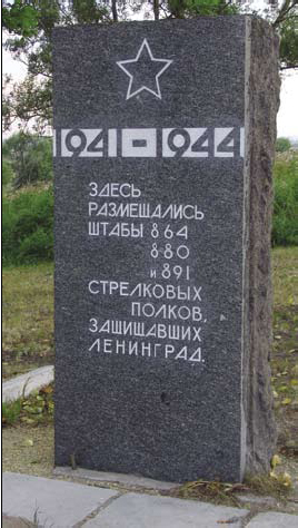 | | | | hidden | | | 2-й километр шоссе Пулково – Пушкин. Двухметровая стела из серого гранита у восточной обочины шоссе отмечает место, где в блиндажах размещались штабы 864, 880 и 891-го стрелковых полков 6-й дивизии народного ополчения ... | | 2-й километр шоссе Пулково – Пушкин. Двухметровая стела из серого гранита у восточной обочины шоссе отмечает место, где в блиндажах размещались штабы 864, 880 и 891-го стрелковых полков 6-й дивизии народного ополчения, сражавшейся на Пулковских высотах в конце сентября 1941 года. Эта дивизия стала 189-й стрелковой дивизией. Памятник открыт в мае 1968 года.