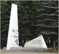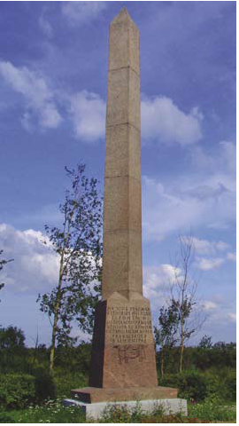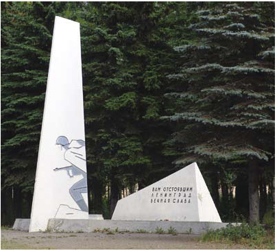| | | | hidden | | | 30-й километр Московского шоссе.Двенадцатиметровый гранитный обелиск высится на 30-м километре Московского шоссе. Поставленный на пьедестал по диагонали, он напоминает трехгранный русский штык ... | | 30-й километр Московского шоссе. Двенадцатиметровый гранитный обелиск высится на 30-м километре Московского шоссе. Поставленный на пьедестал по диагонали, он напоминает трехгранный русский штык. Здесь 24 сентября 1941 года после изнурительных и кровопролитных боев части 168-й стрелковой дивизии остановили врага и заняли прочную оборону. На этих же рубежах Ижорский рабочий батальон, не отступив ни шагу назад, вел жестокий бой с гитлеровцами. В октябре 1941 года 168-ю стрелковую дивизию сменила 7-я отдельная бригада морской пехоты. В течение 900 дней эти рубежи защищали части 55-й армии. Памятник установлен на низком холме, огражденном поребриком. На сужающемся кверху четырехгранном цоколе высечены слова: «На этих рубежах в сентябре 1941 года героизм и непреклонная воля воинов 55-й армии остановили врага, рвавшегося в Ленинград». Памятник открыт 25 июня 1957 года. Автор проекта – архитектор М. К. Меликова.