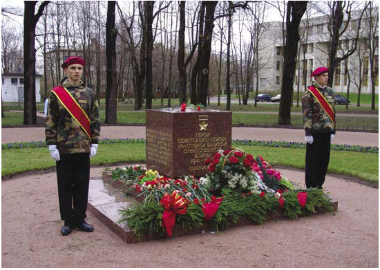 | | | | hidden Воинское захоронение «Петербургское шоссе, 4-й км» | | Мемориал создан в 1966 г. Авторы: В. А. Неверов, В. А. Сидоров, Ф. А. Еникеев, В. П. Бойцов, П. Е. Сыроежкин, Е. В. Черкасов. Он представляет собой стелу из черного мрамора высотой 3 м. У основания стелы установлен якорь ... | | Мемориал создан в 1966 г. Авторы: В. А. Неверов, В. А. Сидоров, Ф. А. Еникеев, В. П. Бойцов, П. Е. Сыроежкин, Е. В. Черкасов. Он представляет собой стелу из черного мрамора высотой 3 м. У основания стелы установлен якорь. На гранитной плите стелы выбиты слова: «Вечная слава героям, павшим в боях за свободу и независимость Родины. 1941–1945 гг.». Над захоронением шефствует Военно-морской инженерный институт.