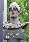 Выдающийся полководец Древней Руси, крупнейший военачальник своего времени, новгородский князь, Великий князь Владимирский 15 (21) июля 1240 г. силами небольшой дружины и ладожского ополчения, разгромил шведское войско в Невской битве, в которой показал себя умелым военачальником, проявив доблесть и геройство, за что был назван «Невским». 5 (11) апреля 1242 г. в битве на Чудском озере, названной «Ледовым побоищем», разгромил главные силы Ливонского ордена, остановив нашествие немецких рыцарей на Русь. Будучи дальновидным политиком и искусным дипломатом, добивался предотвращения разрушительных нашествий татар на Русь, укрепляя центральную великокняжескую власть.