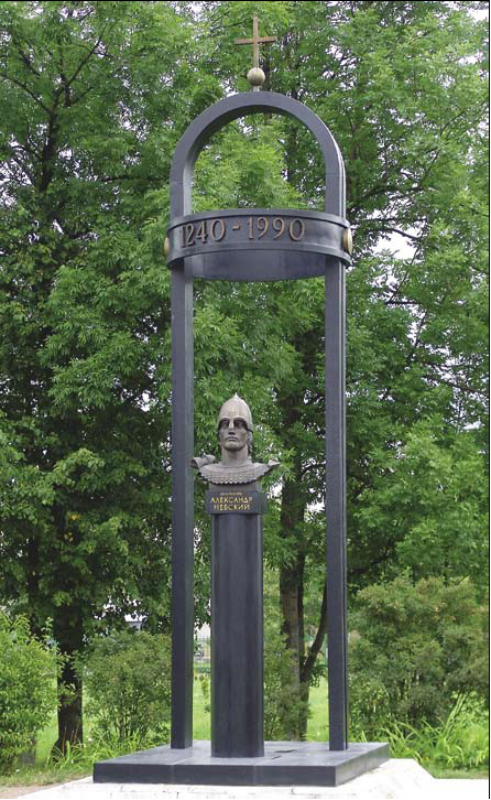 28-29 марта 1992 г., в год 750-летия «Ледового побоища» воины Ленинградского военного округа, офицеры, курсанты военно-учебных заведений Санкт-Петербурга, воины Артиллерийской дивизии РВГК (г. Пушкин), Псковской воздушно-десантной дивизии, учащаяся молодежь городов Пушкина и Колпино, летчики Испытательной авиаэскадрильи курсанты ВВМИУ и ПВВИУ Пушкинского гарнизона организовали военно-исторический поход к месту сражения на берегу Чудского озера и установили памятник Александру Невскому — копию памятника, установленного у Софийского собора в г. Пушкине (скульптор В. Г. Козенюк), и Памятный крест (скульптор В. Рещиков).