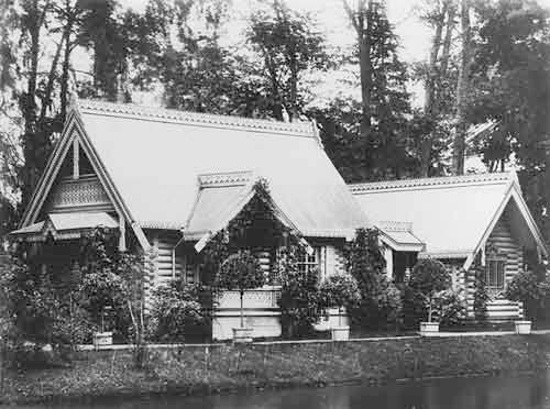 | | | | hidden «Фермочка» великой княжны Марии Александровны» (ансамбль Екатерининского парка) | | Император Александр II близ своих апартаментов в Екатерининском дворце повелел устроить для игр своих детей разные затеи, из которых наиболее известна «Фермочка» великой княжны Марии Александровны ... | | Император Александр II близ своих апартаментов в Екатерининском дворце повелел устроить для игр своих детей разные затеи, из которых наиболее известна «Фермочка» великой княжны Марии Александровны. Фермочку часто ошибочно связывают с Александровским парком, однако в действительности находилась она в Собственном саду Екатерининского парка вблизи Концертного зала. Миниатюрный ансамбль включал две бревенчатые крестьянские избы, коровник, птичник, ледник. Этот пасторальный парковый комплекс в виде уменьшенной копии настоящего скотного двора построил в 1861 г. И. Монигетти для старшей дочери Александра II. Фасады, интерьеры, убранство и утварь были исполнены в русском стиле, с использованием в декоре народных орнаментальных мотивов. Впоследствии рядом под открытым небом соорудили игрушечную железную дорогу с тоннелями и мостами, приводившую к порту на берегу Верхних прудов, а также кегельбан и гимнастическую площадку для детей Александра II. Павильон Фермочка утрачен во время войны и оккупации г. Пушкина в 1941–1944 гг. Г. В. Семенова Персоны Александр II, император Монигетти Ипполит Антонович