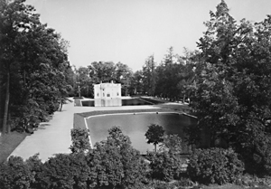 Скрытый в зеленых кущах рощи павильон «Эрмитаж» с обрамлявшим его Эрмитажным каналом построили в 1744–1746 гг. по проекту архитектора М.Г. Земцова вчерне. Завершено оформление в 1749—1754 гг. Ф.-Б. Растрелли. Скульптурное убранство выполнили И ...