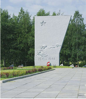 | | | | hidden Militia Men. The 6th kilometer of the Pulkovo-Pushkin Highway. | | A memorial complex with a monumental stele resembling a spread banner at the center, was constructed at the place where a command post of one of the сompanies of the 189th rifle division was located ... | | A memorial complex with a monumental stele resembling a spread banner at the center, was constructed at the place where a command post of one of the сompanies of the 189th rifle division was located. The dynamics of the structure is strengthened by a bas-relief of Leningrad defenders. “1941 – 1945” is written below the bas-relief. The inscription at the backside of the monument reads “The enemy didn’t cross this line in September of Nineteen Forty One. Leningrad soldiers held this soaked in heroes’ blood line firm. The enemy was defeated in severe battles. The siege was lifted by a powerful attack.” From here the 110th infantry corps started the attack to lift the siege of Leningrad in January of 1944. The complex was designed by architects V.A. Neverov, V.A. Sidorov, V.P. Boytsov, F.A. Yenikeev and sculptors I.A. Syroyezhkin and E.V. Cherkasov. Two 57 mm guns stand on two differentsized pedestals on the north bank of the Kuzminki River not far from the memorial.