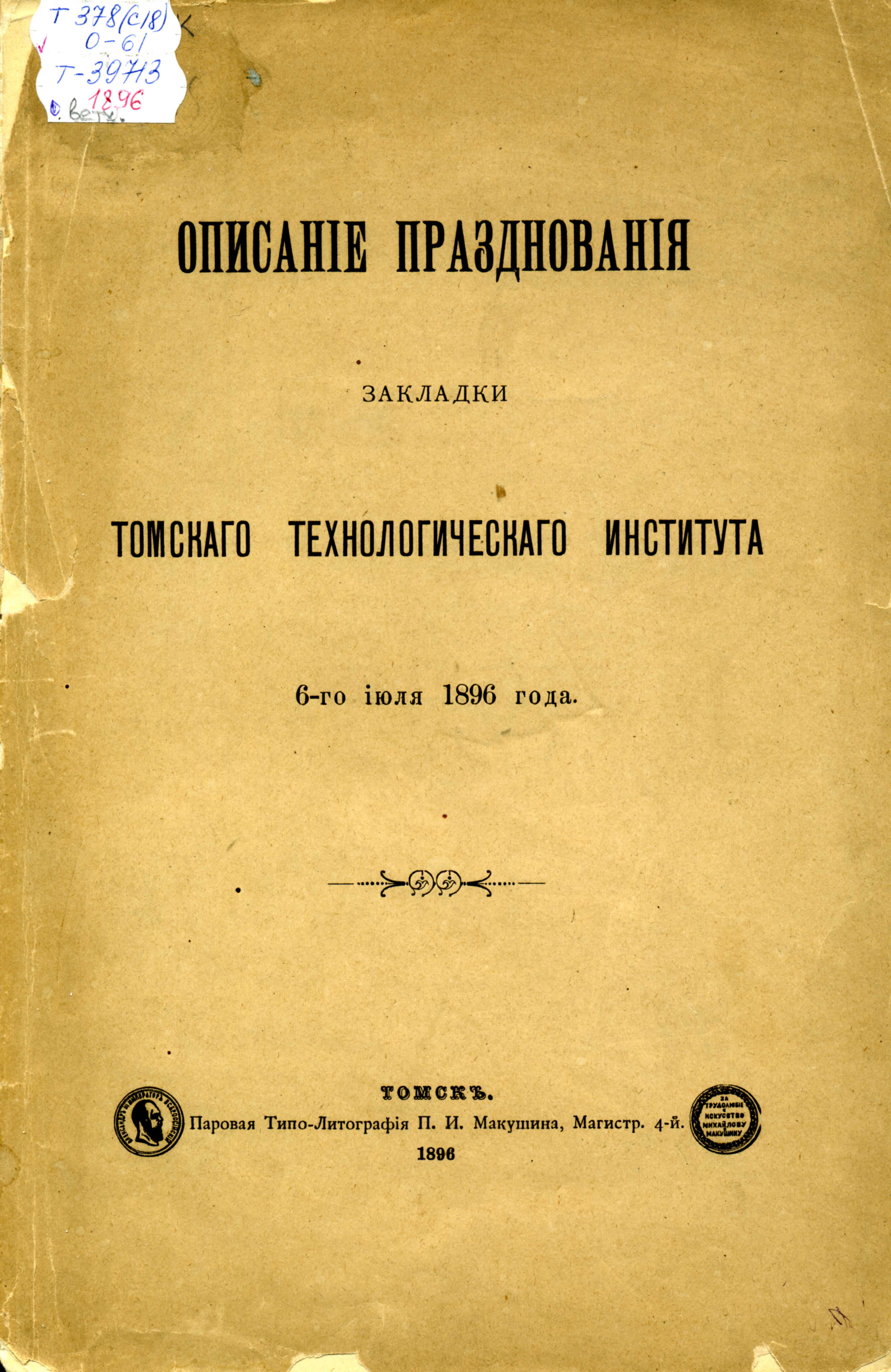 СобытиеТоржественная закладка главного здания Томского технологического института (ныне НИ ТПУ), получившего имя Императора Николая II. Город был иллюминирован и украшен цветами и зеленью. На фасаде книжного магазина П.И. Макушина красовался транспарант с портретом царя и словами: «Свету, знания и правды дорогой Сибири!». Первые лекции в институте начались с 9 октября 1900 г.
