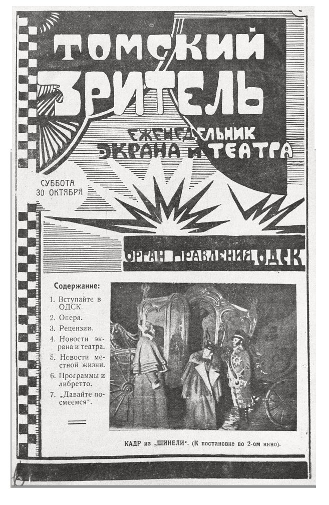 Вышел первый номер журнала «Томский зритель», задачей которого ставилось просвещение читателей в области кино и театра. Журнал издавался два года.