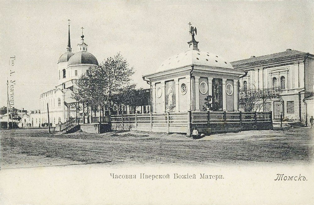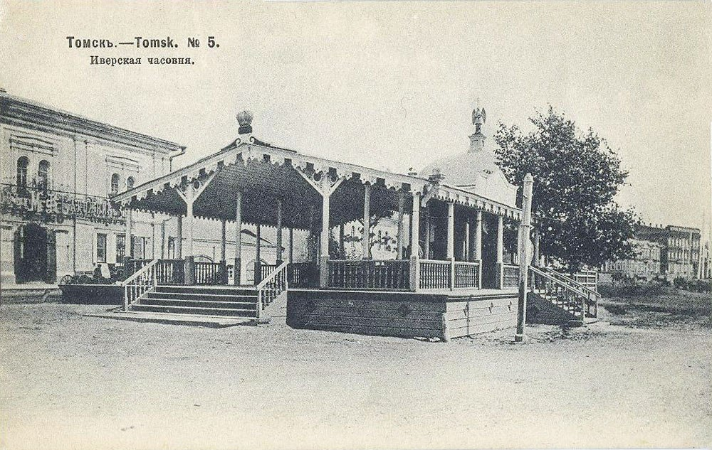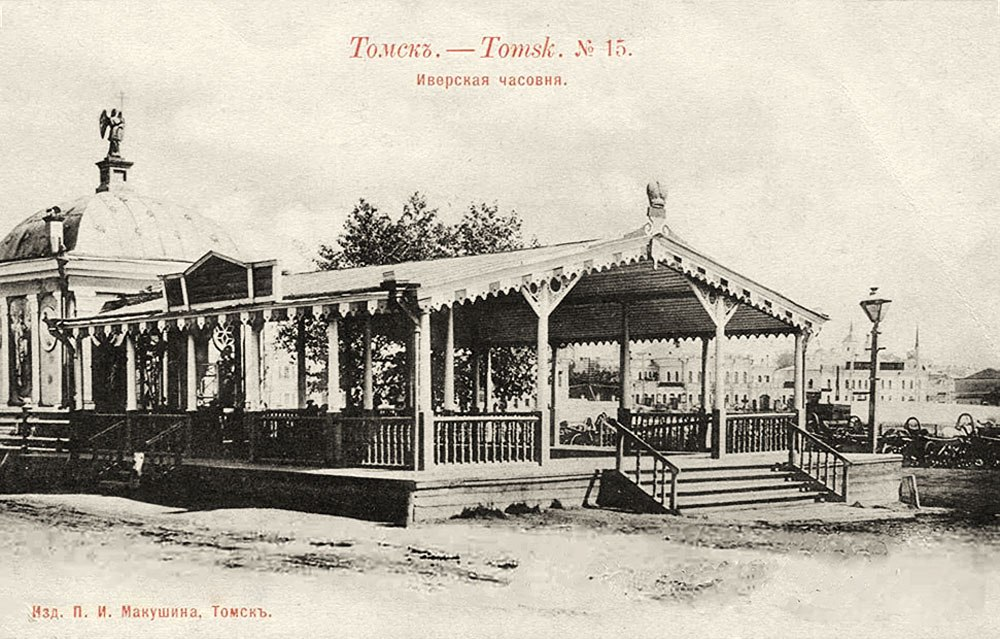 Построенная в центре города Иверская часовня именовалась томичами «духовными вратами Томска». Именно здесь проходил прием наследника цесаревича Николая 5 июля 1891 года, к приезду которого с западной стороны часовни была пристроена специальная крытая деревянная площадка – «сень».