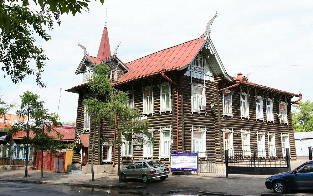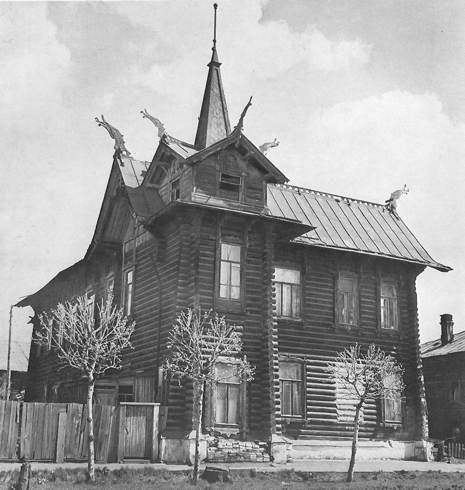 Архитектура здания эффектна и несколько претенциозна. Двухэтажный деревянный дом построен