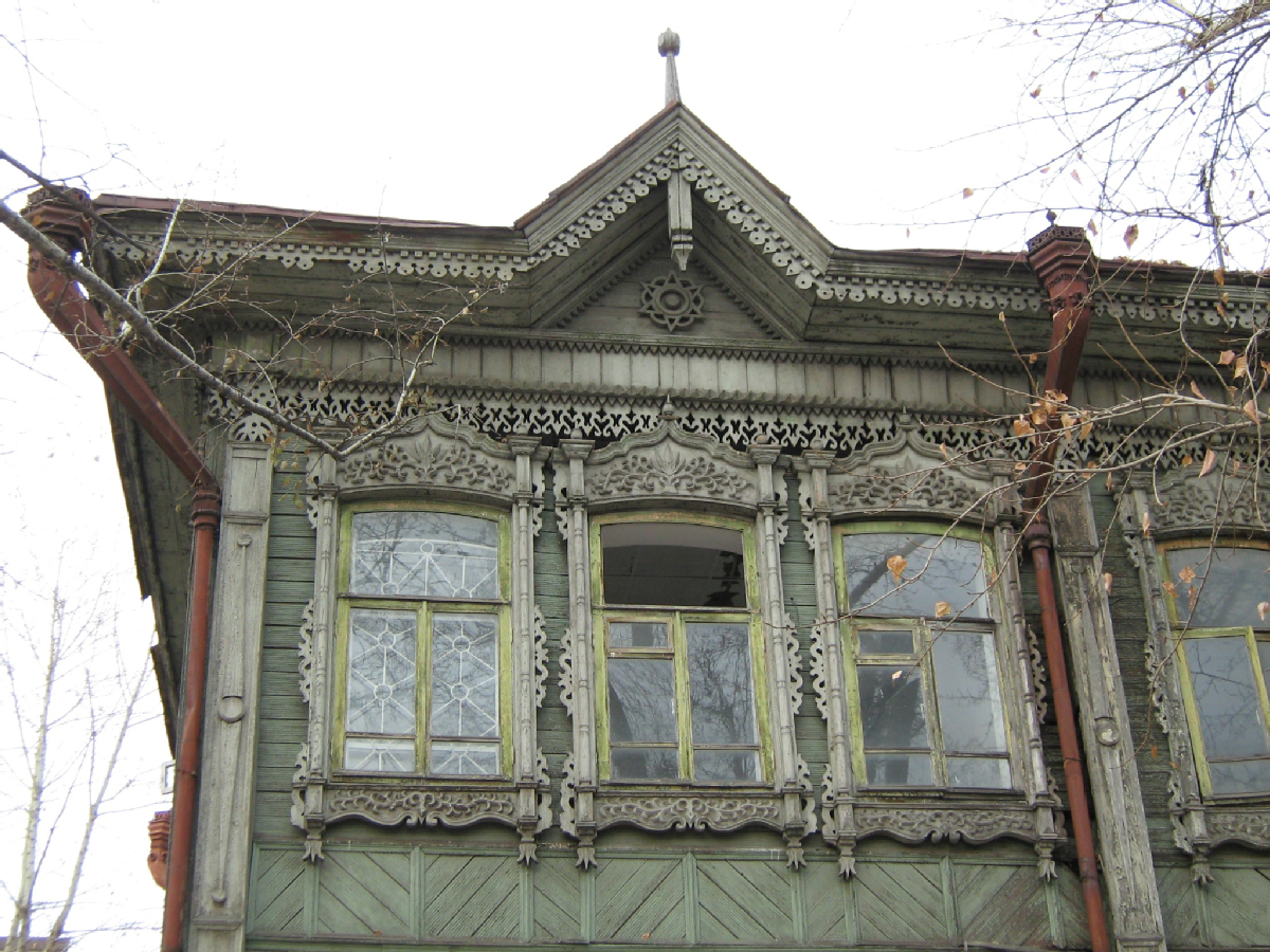 Дом построен в 1902 г. Автор проекта и исполнитель неизвестны. Заказчиком дома, по-видимому, был Андрей Семенович Григорьев, которому в 1908 году принадлежал этот участок земли. Его инициалы «АСГ» помещены на тимпане центрального фронтона главного фасада. Позднее (до 1915 года) дом и участок перешли во владение «Торгового дома Е. Кухтерин и сыновья». Пример крупного городского многоквартирного доходного дома начала ХХ века, выполненного в дереве. Отличается богатым убранством наружного резного декора.