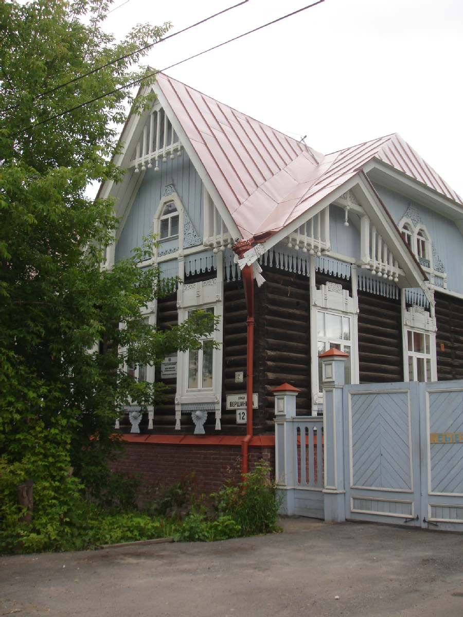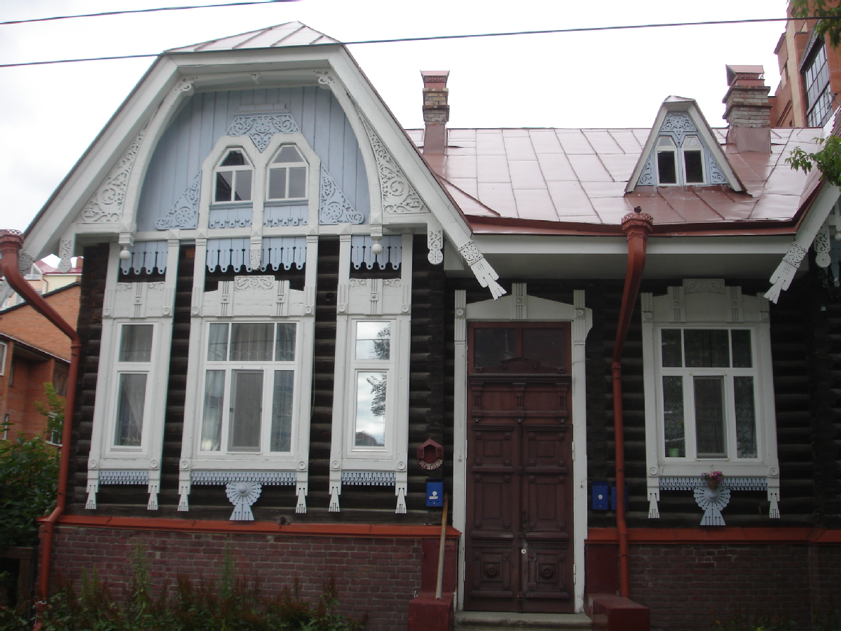 Большой одноэтажный деревянный дом имеет сложную форму плана, приближающуюся к Г-образной. Линия главного фасада обогащена двумя боковыми ризалитами, завершающимися фронтонами. На дворовом фасаде – эркер, введенный для улучшения освещения помещения, расположенного вдоль дворового фасада. Дом поставлен на высокое кирпичное основание, в южной части которого располагаются жилые и подсобные помещения. Стены рублены из бревен в «лапу». Завершает дом высокая двухскатная крыша с дополнительными скатами фронтонов. Восточное крыло – с четырехскатной крышей. Крыльцо парадного входа располагается на главном фасаде между ризалитами и ведет в отапливаемую прихожую с широкой лестницей. Просторные жилые помещения расположены по периметру здания и соединены дверными проемами с центральным коридором. Имеется также дополнительный выход во двор. Вход в подвал осуществляется со двора, а также по внутренней лестнице в центральной части дома, помещения его располагаются вдоль южного фасада. Асимметрично расположенные оконные проемы разной формы обрамлены плоскостными наличниками с пропильной и накладной резьбой, сочетающей геометрические элементы (завершение) со стилизацией русских вышивок (подоконная доска). Фронтоны обшиты вертикально поставленными досками с интересным рисунком свесов. Края причелин украшены несложным пропильным орнаментом из полос и кругов. Изящные решетки с точеными элементами помещены в треугольных фронтонах на краю свеса крыши. Трапециевидный фронтон северного ризалита украшен плоской накладной резьбой стилизованного растительного орнамента. Филенчатая высокая дверь парадного входа – с выпуклыми прямоугольниками, квадратами, кругами. В помещениях оштукатуренные и побеленные стены украшены профилированными лепными карнизами. На потолках помещены розетки. В интерьере сохранились печи, высокие филенчатые двери с латунными ручками. Декорация дома, выполненная в неорусском стиле, хорошо сочетается с продуманной объемной композицией дома, решенной в духе модерна (Информация предоставлена Департаментом по культуре и туризму Томской области).
