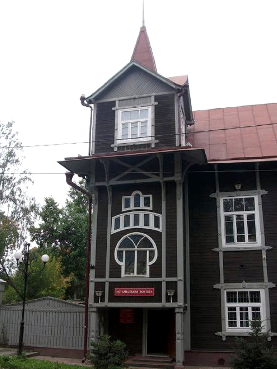 Двухэтажный деревянный дом стоит на углу улиц Кузнецова и Карташова. Его прямоугольный план усложнен выступами эркера на восточном фасаде и лестничного тамбура – на южном. Эркер завершен четырехгранной башней с треугольными фронтонами по граням и невысоким шатром со шпилем в центре. В башне устроена «светелка». Перекрытие – две высокие взаимно перпендикулярные двухскатные крыши. Дверные проемы и вспомогательные оконные проемы первого и второго этажей переходят в резные кронштейны, поддерживающие вынос кровли. Они украшены резьбой геометрического рисунка. Эркер прорезан фигурными оконными проемами, освещающими внутреннюю лестницу. Фасад по улице Карташова членится приставными четырехгранными фигурными столбами, заканчивающимися массивными фигурными кронштейнами. Особое внимание уделено оформлению фронтонов северного и южного фасадов, украшенных обшивкой. Края нижней вертикальной обшивки с пропильной резьбой растительного орнамента. В центре помещено сложной формы чердачное окно. На краю свеса крыши – решетка. Фронтон увенчан шпилем. Внутренняя планировка частично изменена. Первоначальное оформление интерьера почти полностью утрачено. Сохранились обшивка профилированными досками стен лестничной клетки и «светелки». Над лестничной клеткой слегка скругленный потолок. Основные габариты: 23,6 х 14 м (Информация предоставлена Департаментом по культуре и туризму Томской области).
