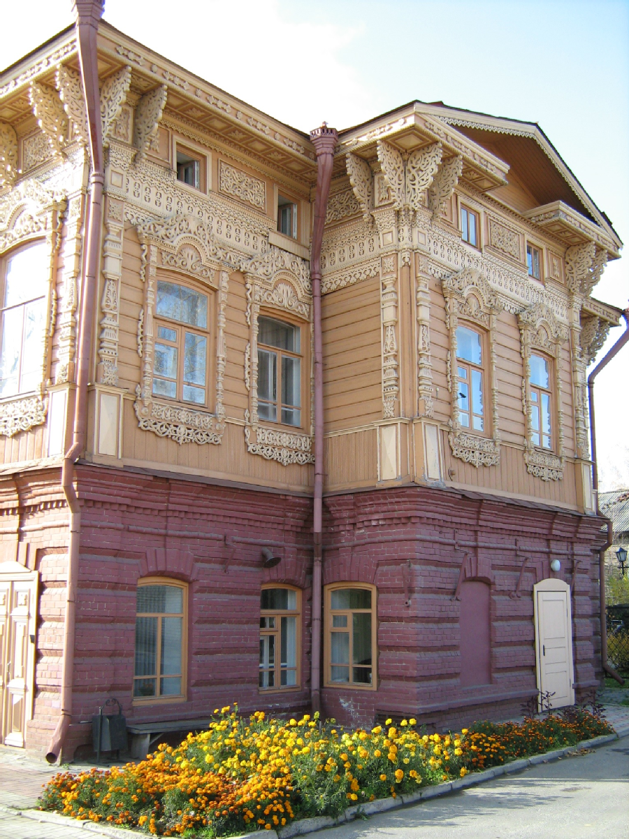 Дом расположен в восточной части старого города, в историческом районе «Болото». Здание построено в характерных для томской архитектуры начала ХХ в. формах. В плане дом представляет прямоугольник. Первый его этаж каменный, рустованный, решен в строгих формах классицизма, с четким ритмом замковых камней над окнами, поддерживает более лёгкий деревянный второй этаж. Второй этаж обшит профилированными досками. Наибольшей насыщенностью декоративными элементами обладает карнизная часть фасадов здания с развитым многоярусным фризом. Ажурные витые фигурные деревянные кронштейны поддерживают значительный вынос карниза. Плоскость фасадов изрезана большим количеством окон. Оконные проемы первого и второго этажей прямоугольные с лучковым завершением. Наличники окон 2-го этажа с полуциркульной формой завершения имеют оформление вертикальных элементов объемной накладной резьбой в виде фигурных полуколонок, богато декорированы объемной флянцевой и пропильной резьбой растительного орнамента. Их можно рассматривать как самостоятельное произведение народного творчества. В центральной части восточного фасада расположена открытая двухэтажная терраса на 4-х квадратных в сечении столбах с ограждением в виде фигурных балясин. Северо-восточный фасад дома украшен выступом ризалита и мезонина. Ризалит в общем силуэте здания выделяется венчающим треугольным фронтоном. К главному фасаду дома вдоль красной линии улицы примыкают трехпролетные кирпичные неоштукатуренные ворота. Центральный проём и боковые калитки имеют красивые по рисунку металлические решетки необарочного характера. Парадный вход в дом расположен на главном фасаде с ул. Шишкова, оформлен выступающим из поля стены тамбуром с завершением округлой формы и накладным объемным декором в виде угловых пилястр с ионическими капителями и элементами декора растительного орнамента. Первоначальная внутренняя планировка дома хорошо сохранилась. Центральную часть здания занимает П-образный коридор, вокруг которого группируются все помещения в единую композицию. В ходе эксплуатации здания построена новая лестница на втором этаже, разобраны две старые стены, заложен ряд проемов. Интерьеры дома сохранили ряд элементов первоначального убранства: белая кафельная печь, тянутые карнизы и лепные розетки в некоторых помещениях первого этажа (Информация предоставлена Департаментом по культуре и туризму Томской области).