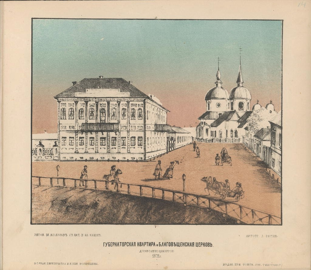В начале XIX в. на этом месте стоял деревянный дом Анны Григорьевны Шумиловой, урожденной Зеленцовой, жены знаменитого купца 1-й гильдии Михаила Ивановича Шумилова. Во дворе шумиловского дома располагался небольшой деревянный флигель, который выстроил там четвертый томский губернатор Домиан (Демьян) Васильевич Илличевский, проживавший в Томске в 1812-1819 гг. Позже, в 1843 г., А.Г. Шумилова приобрела этот флигель в собственность. Следующим губернатором, который квартировал в «губернаторском флигеле», был выдающийся деятель русской науки, известный ученый-металлург, томский губернатор Павел Петрович Аносов (1847-1851 гг.). Одним из главных его научных достижений является открытие технологии получения булатной стали и оружия из нее («О булатах», 1841 г.). При нем были образованы губернское правление, казенная палата и губернский суд. Вероятно, и другие томские губернаторы, руководившие губернией в первой половине XIX столетия, следовали примеру Илличевского и Аносова.