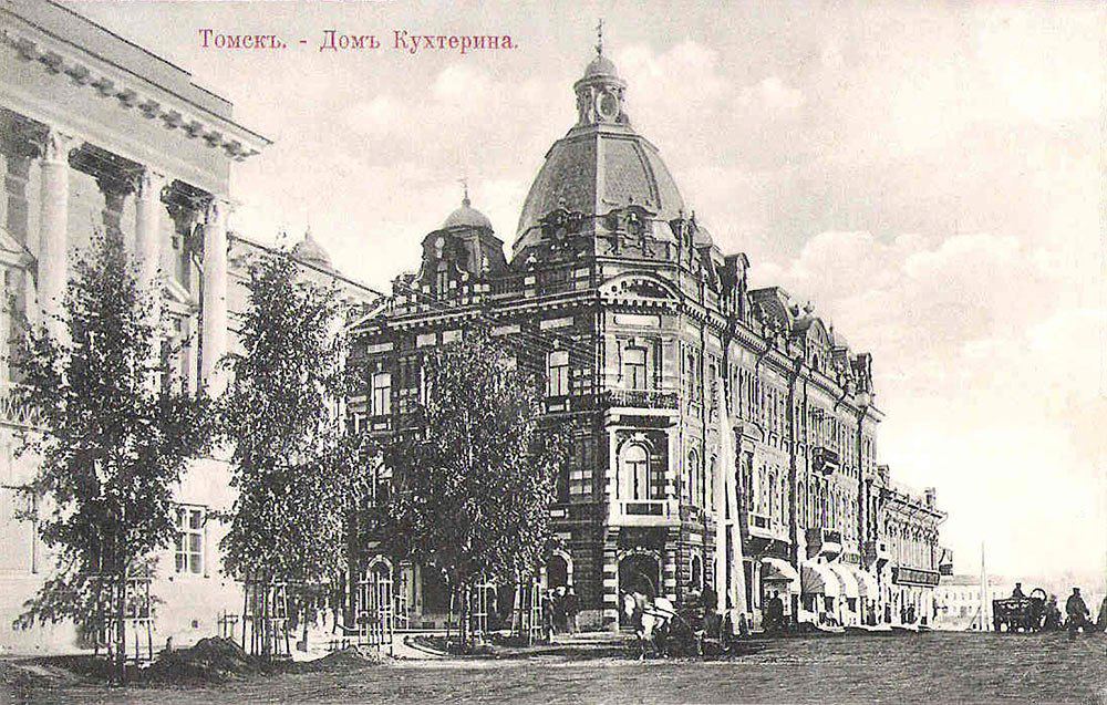 Дом построен в 1899-1900 гг. в центре города в историческом районе «Юрточная гора». Автором архитектурного проекта стал Константин Константинович Лыгин, он же лично следил за ходом строительства. Заказчиком выступил торговый дом, основанный знаменитым томским купцом Евграфом Николаевичем Кухтериным. Кухтерины происходили из государевых ямщиков, поселенных в Сибири по грамоте царя Бориса Годунова для несения государственной дорожной повинности. Со временем семейное дело Кухтериных получило значительное развитие, они осели в Томске, начали вкладывать деньги в промышленность. На момент строительства здания главой торгового дома был Алексей Евграфович Кухтерин (старший сын).
