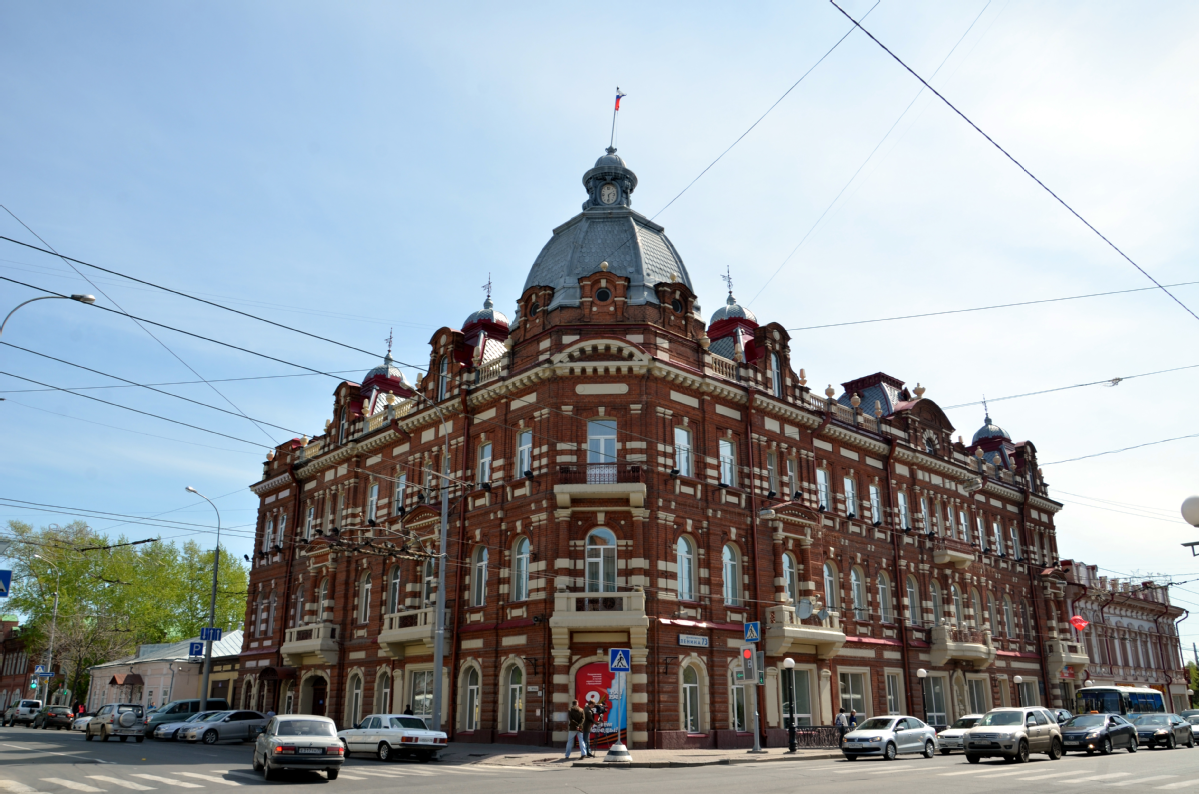 Трехэтажное с подвалом кирпичное неоштукатуренное здание выстроено в формах, характерных для томского гражданского зодчества конца XIX – начала XX века. В основе планировочной структуры дома лежит Г-образная форма со скошенным внешним углом. Со стороны двора композиция усложнена Г-образным выступом с востока и полукруглым выступом с юга. С запада здание имеет три небольших ризалита, с севера – два. Объемно-пространственная композиция здания носит живописный характер. Над трехэтажным «телом» дома возвышаются различной формы мансардные аттики, расположенные по осям ризалитов двух главных фасадов. Доминирующую роль в силуэте здания играет восьмигранный массивный купол, расположенный над угловой частью дома. Он венчается световым барабаном в виде ротонды. Главные (западный и северный) фасады расчленены по горизонтали на три зоны, которые отделены друг от друга межэтажными профилированными поясами. Большую композиционную роль играют массивные балконы, помещенные на втором этаже по осям ризалитов. Наряду с мансардными аттиками они способствуют выделению ризалитных осей в общей фасадной композиции. Благодаря этому в излишне «дробное» построение главных фасадов вносится некоторая строгость и упорядоченность. Массивные крупномасштабные формы декора главных фасадов здания имитируют декоративное убранство западноевропейской архитектуры Нового времени. Ярким своеобразием отличается декор благодаря сочетанию неоштукатуренной кирпичной поверхности стены и ряда деталей с элементами, выполненными из желтого песчаника. Этот прием характерен для К.К. Лыгина. В здании из песчаника сделаны наиболее важные в композиционном и пластическом отношениях детали фасадного декора: балконы, руст и капители колонн и пилястр, «замковые камни» окон, венчающий карниз и мутулы, вазоны, образующие балюстраду над карнизом. Среди декоративных элементов выделяется геометрическая скульптурная композиция из желтого песчаника, помещенная в глубокую нишу, которая расположена на центральной оси западного фасада. Дворовые фасады здания носят значительно более строгий и простой характер. Внутренняя планировка всех трех этажей почти одинаковая. Нижний этаж отличается от верхних лишь тем, что северо-восточное его крыло «прорезается» сквозным проездом. Продольная капитальная стена, повторяющая Г-образную конфигурацию общего плана дома, делит пространство на две части. Парадный вход в здание расположен с западного фасада. Еще два входа в дом расположены со стороны двора (Информация предоставлена Департаментом по культуре и туризму Томской области).