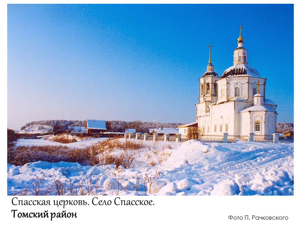 Томского района, 20-е гг. XVII в. Получило название по Спасской церкви, первое упоминание о которой относится к 1644 г. Издревле Спасское было населено хлеборобами и устроено под хлебную житницу Томска. Через село в XVII – сер. XVIII вв. проходил караванный путь из Москвы в Кяхту. Из промысловых занятий здесь был развит дужный промысел. Центр Спасской волости.