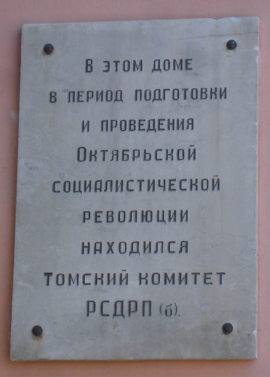 «В этом доме в период подготовки и проведения Октябрьской социалистической революции находился Томский комитет РСДРП(б)»