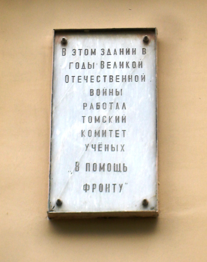 «В этом здании в годы Великой Отечественной войны работал томский комитет учёных «В помощь фронту»