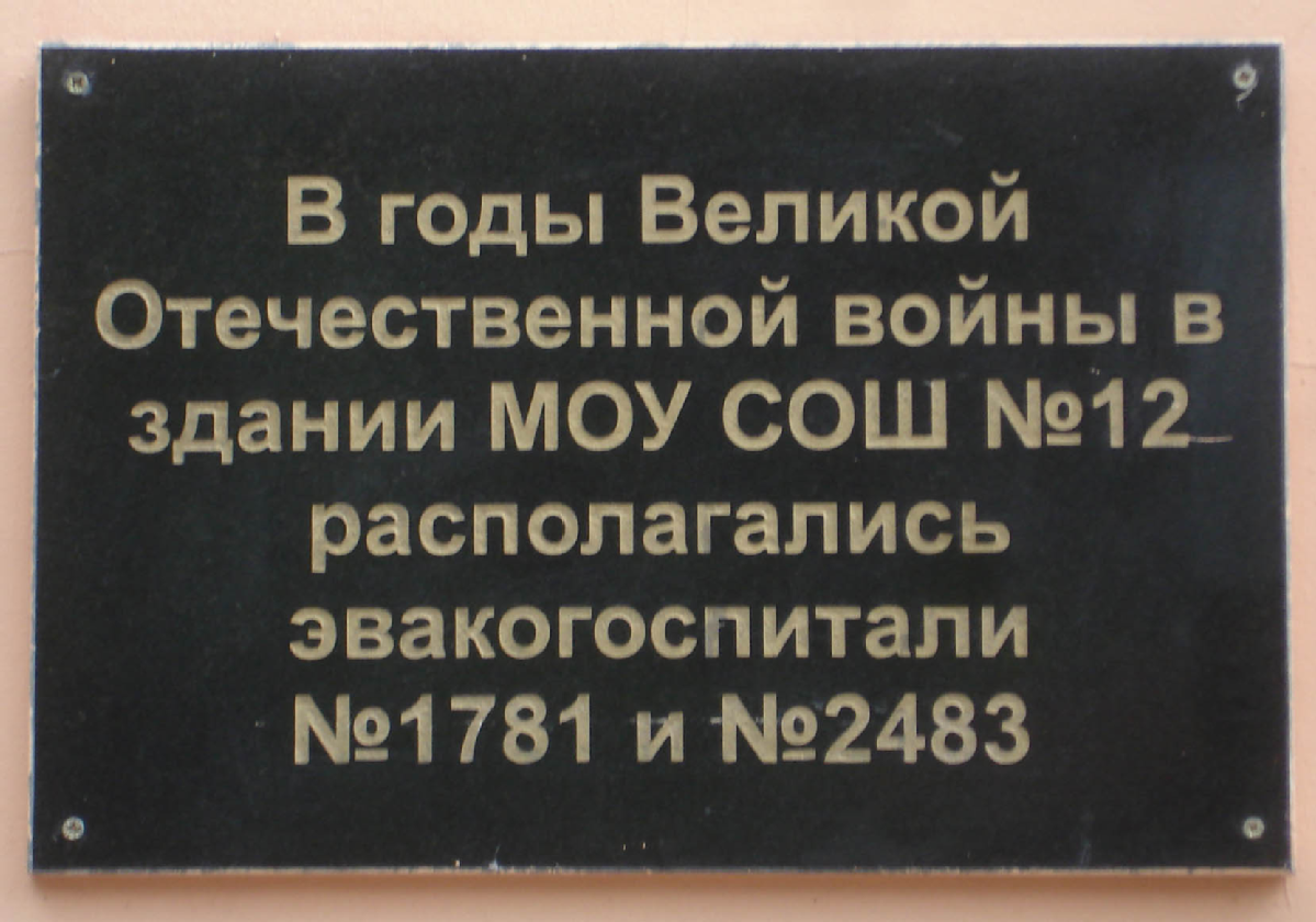 Краткий текст«В годы Великой Отечественной войны в здании МОУ СОШ № 12 располагались эвакогоспитали № 1781 и № 2483»