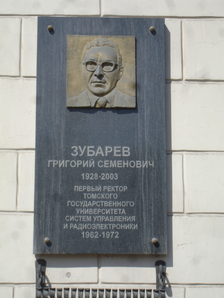 Открыта:10 декабря 2008.«Зубарев Григорий Семенович. 1928-2003. Первый ректор Государственного университета систем управления и радиоэлектроники, 1962-1972»