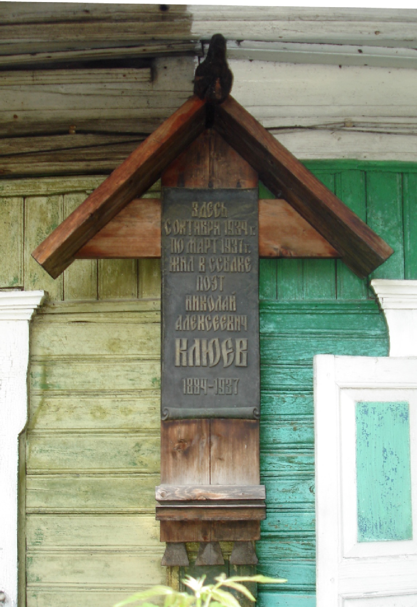 «Здесь с октября 1934 г. по март 1937 г. жил в ссылке поэт Николай Алексеевич Клюев. 1884-1937»