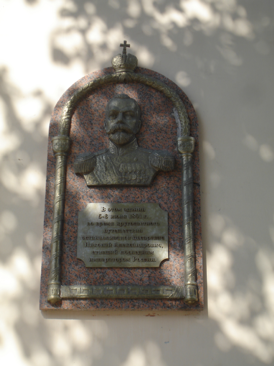 «В этом здании 5-6 июля 1891 г. во время кругосветного путешествия останавливался цесаревич Николай Александрович, ставший последним императором России»