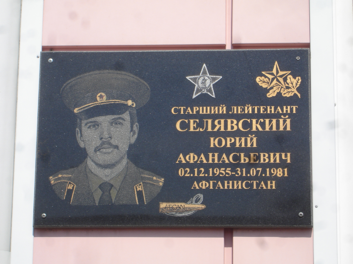 «Старший лейтенант Селявский Юрий Афанасьевич. 02.12.1955-31.07.1981. Афганистан»