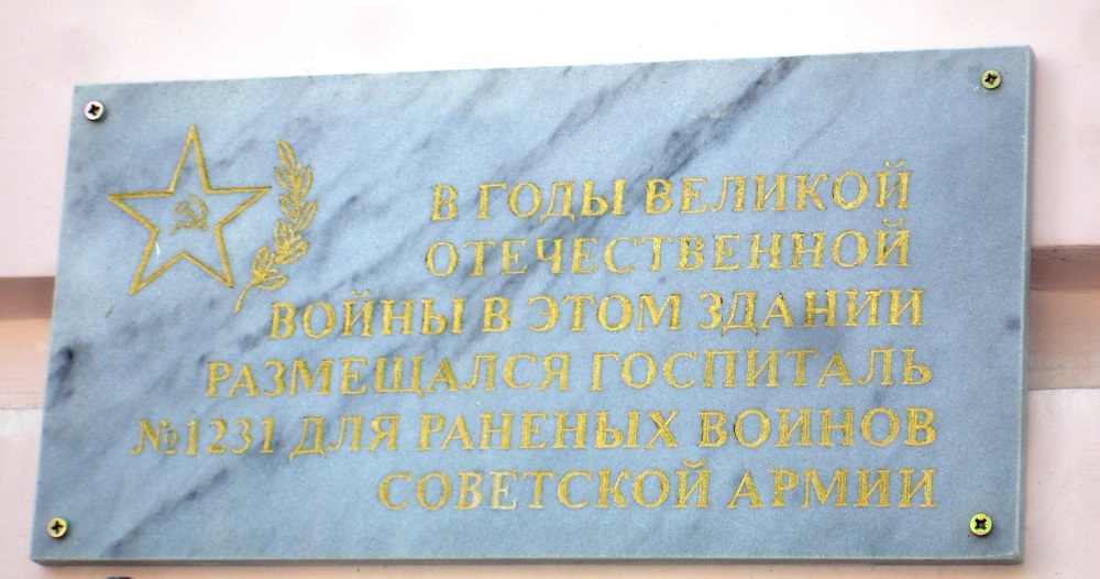 «В годы Великой Отечественной войны в этом здании размещался госпиталь № 1231 для раненых воинов Советской Армии»
