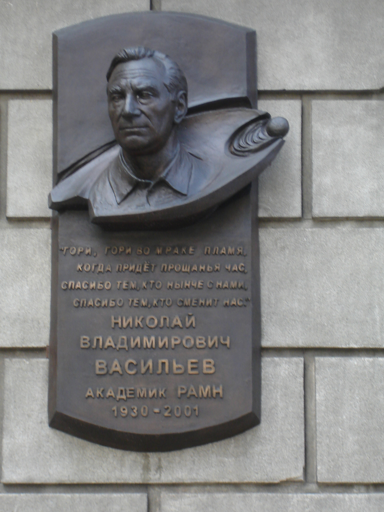 «Гори, гори во мраке пламя, когда придёт прощанья час, спасибо тем, кто нынче с нами, спасибо тем, кто сменит нас». Николай Владимирович Васильев. Академик РАМН. 1930-2001»